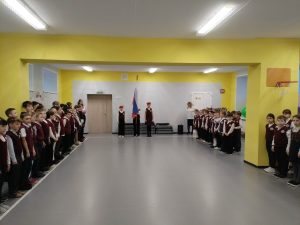 Утро понедельника 24 ноября 2025 года в нашей школе началось с торжественной линейки, церемонии выноса флага и исполнения гимна Российской Федерации.