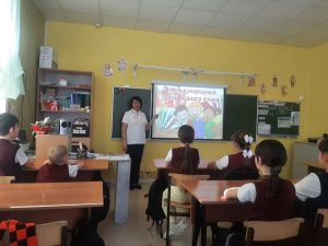 В преддверии праздника советником директора по воспитанию и взаимодействию с детскими общественными объединениями Астраханской О. А. была организована и проведена игра- пантомима «Ожившие пословицы» В ходе игры ребята разделились на команды по 3-4 человека. Каждая команда получила карточки с известной русской пословицей. Задача игроков состояла в том, чтобы без единого слова, только с помощью жестов и мимики, коллективно изобразить её смысл так, чтобы другие команды смогли отгадать.