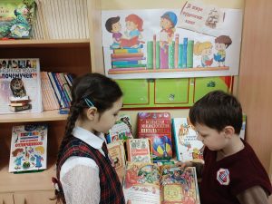 В рамках проекта «Международный день библиотек» РДДМ ученики четвёртого класса Василиса Троеглазова , Валерия Губарева , Илья Большов и Кирилл Ярочкин по согласованию с администрацией школы вместе со школьным библиотекарем Татьяной Васильевной Кузнецовой подготовили и провели для своих младших товарищей по школе интересное мероприятие – информационно — познавательную игру «Путешествие в Книжное царство – Премудрое государство».