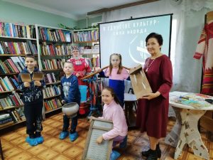 Ребята узнали об истории и традициях села Никольское, познакомились с чувашским костюмом и предметами старины, играли в народные игры, пели песни, пробовали носить воду на коромысле и ухватом чугунок.