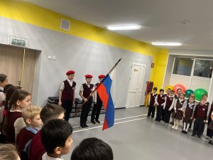 Утро понедельника 24 ноября 2025 года в нашей школе началось с торжественной линейки, церемонии выноса флага и исполнения гимна Российской Федерации.
